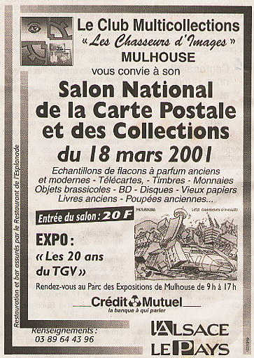 SALON NATIONAL DE LA CARTE POSTALE ET DES COLLECTIONS DU 18 MARS 2001 - MULHOUSE